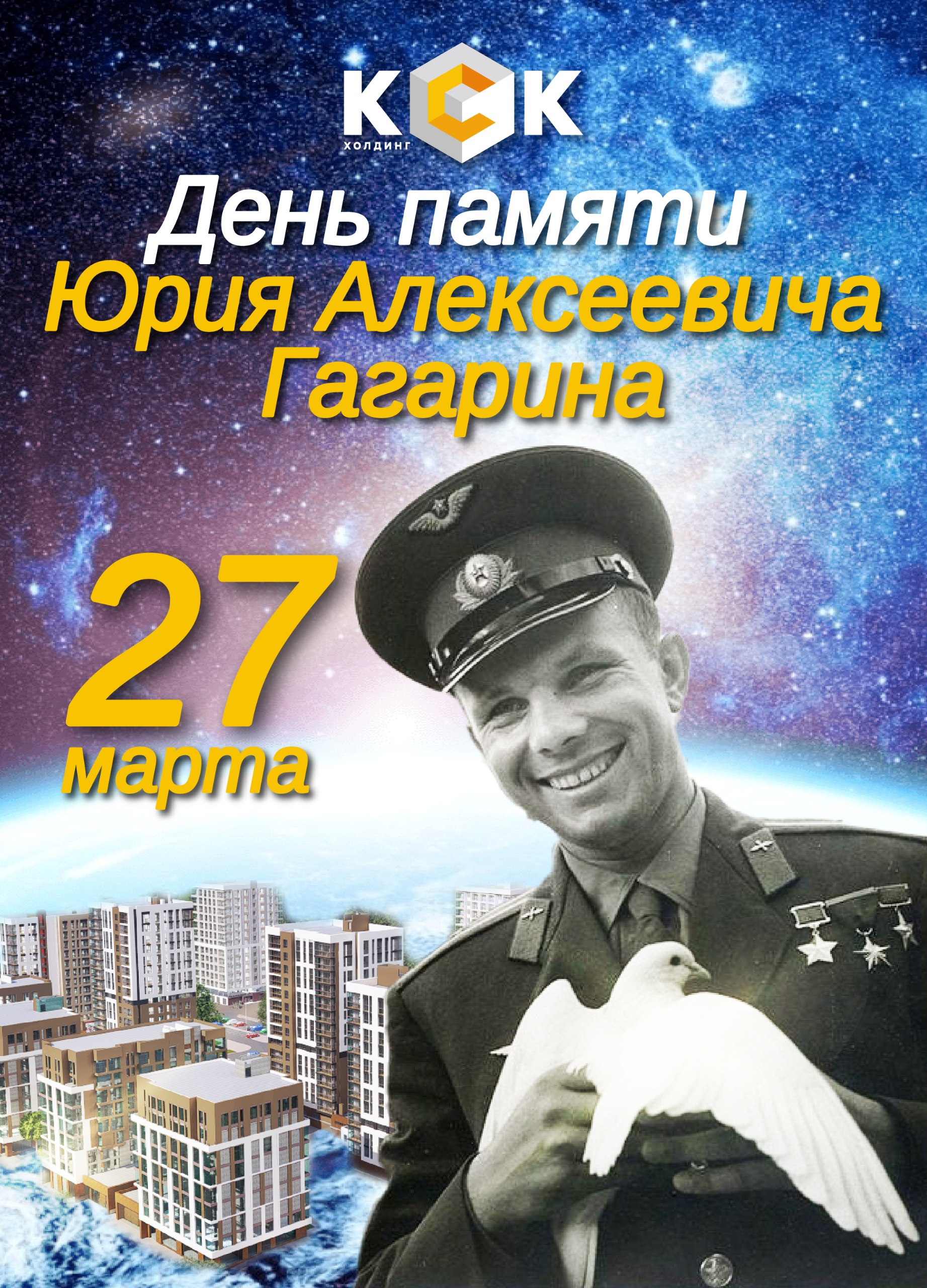 Память о Юрии Гагарине живёт и в нашем городе Иваново. С гордостью отмечаем, что имя первого космонавта присвоено первому литеру в микрорайоне «Звездный», который возводит Холдинг КСК.