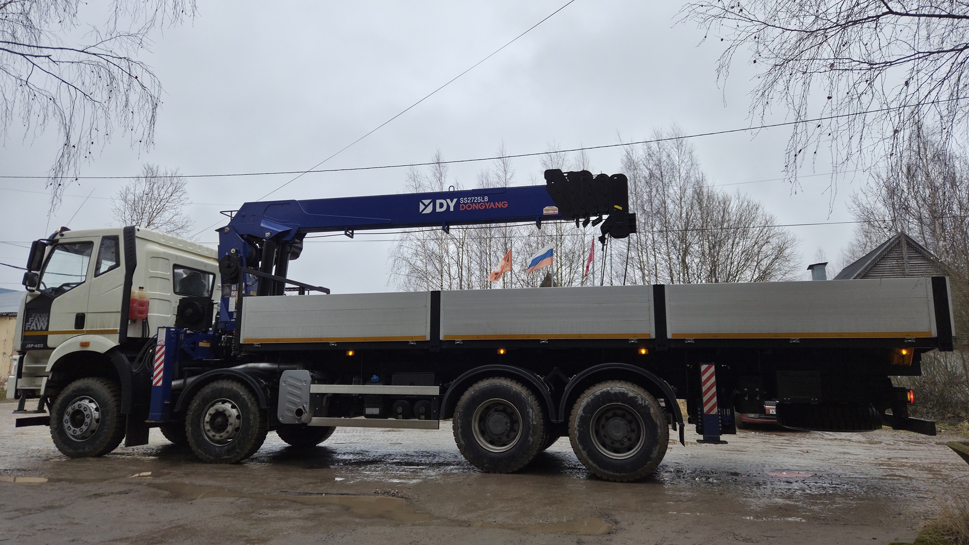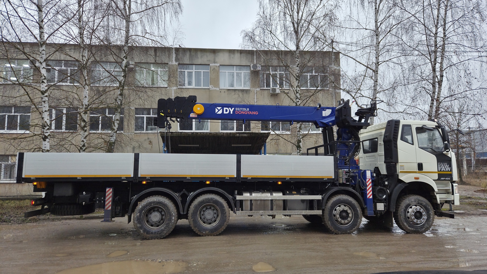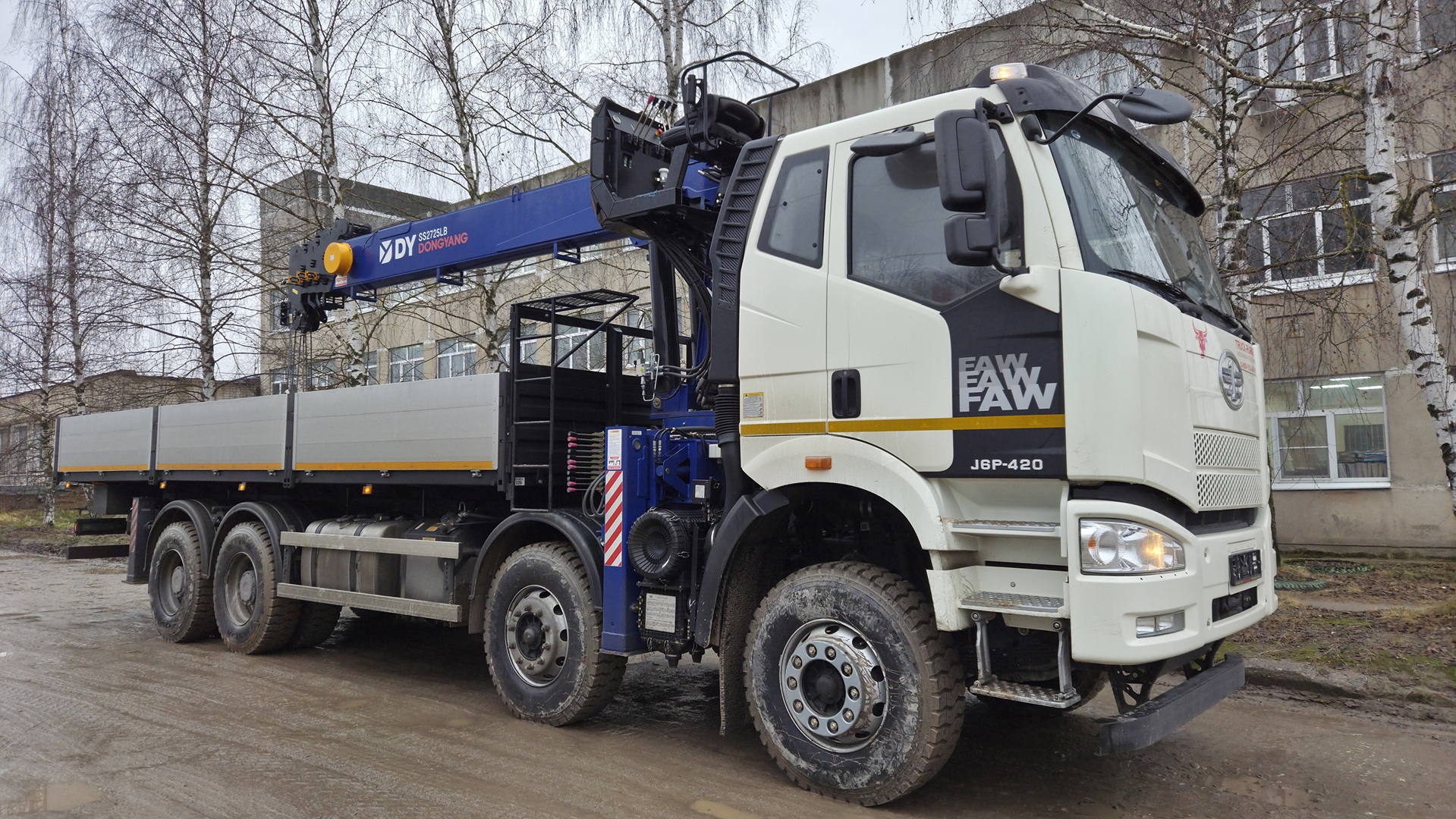 В рамках обновления парка спецтехники на вооружение Комбината Строительных Конструкций поступил новый автомобильный кран-манипулятор на шасси FAW J6P-420 (производство КНР) с КМУ DONGYANG SS2725LB (производство Республики Корея).
