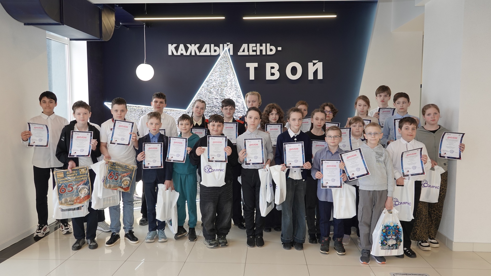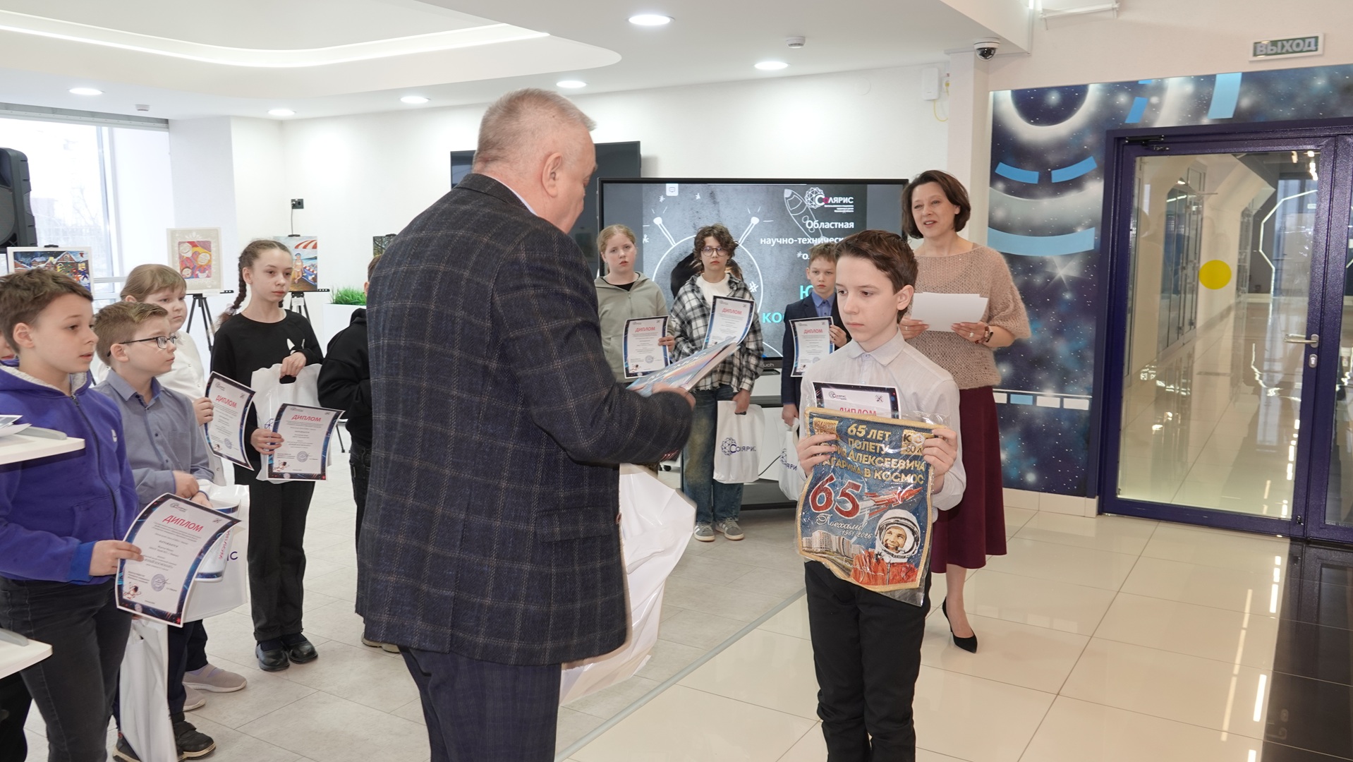 В награждении лучших «юных космонавтов» принял участие и Холдинг КСК. Директор по специальным проектам Андрей Витальевич Корнеев вручил победителям памятные подарки: книги о космосе, «космический» ежедневник и вымпел в честь 65-летия полёта Юрия Алексеевича Гагарина.