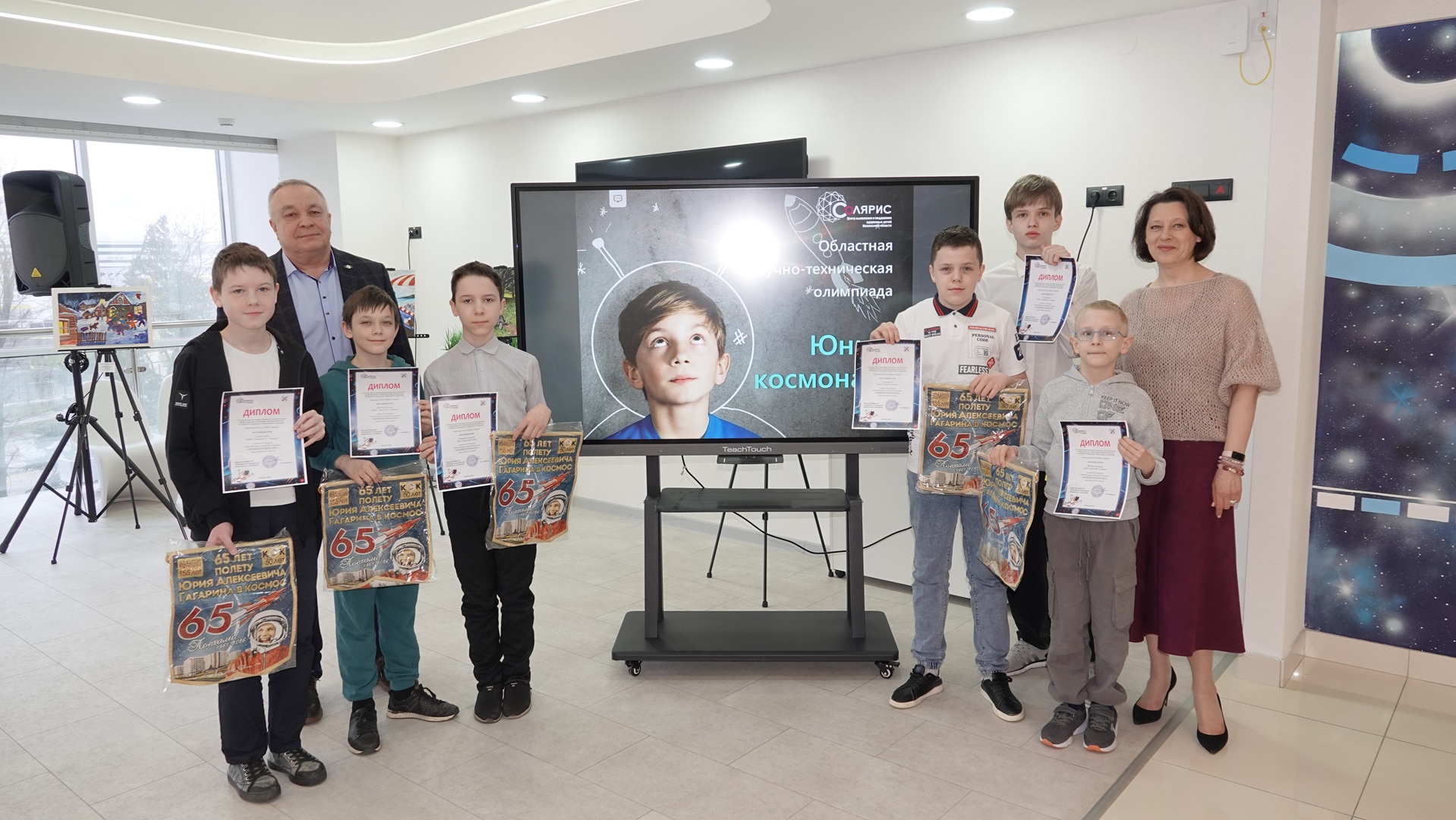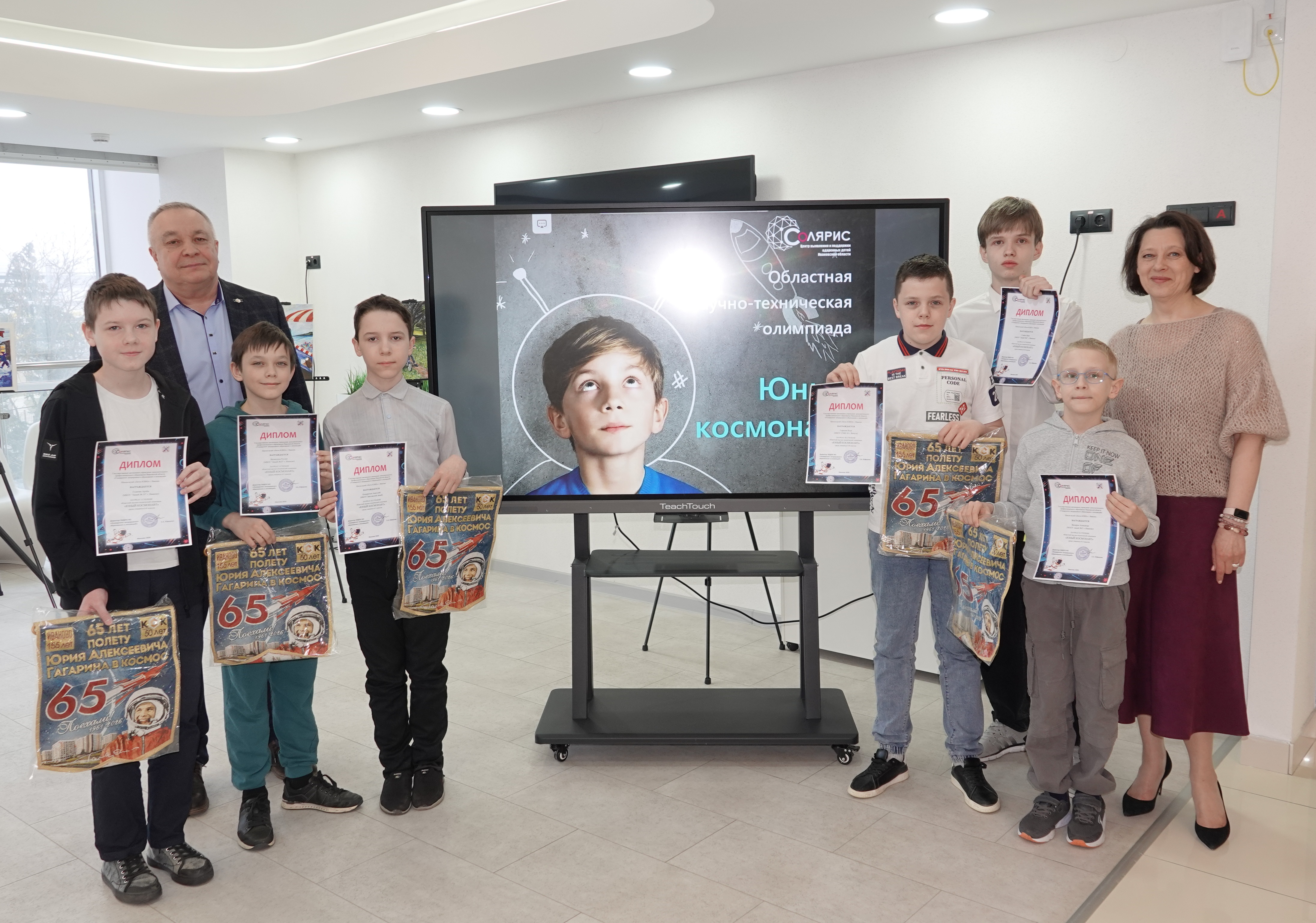 Сегодня, 10 апреля, в преддверии празднования Дня космонавтики и 65-летия первого полёта человека в космос, в ивановском Центре выявления и поддержки одаренных детей «Солярис» чествовали участников областной научно-технической олимпиады «Юный космонавт».