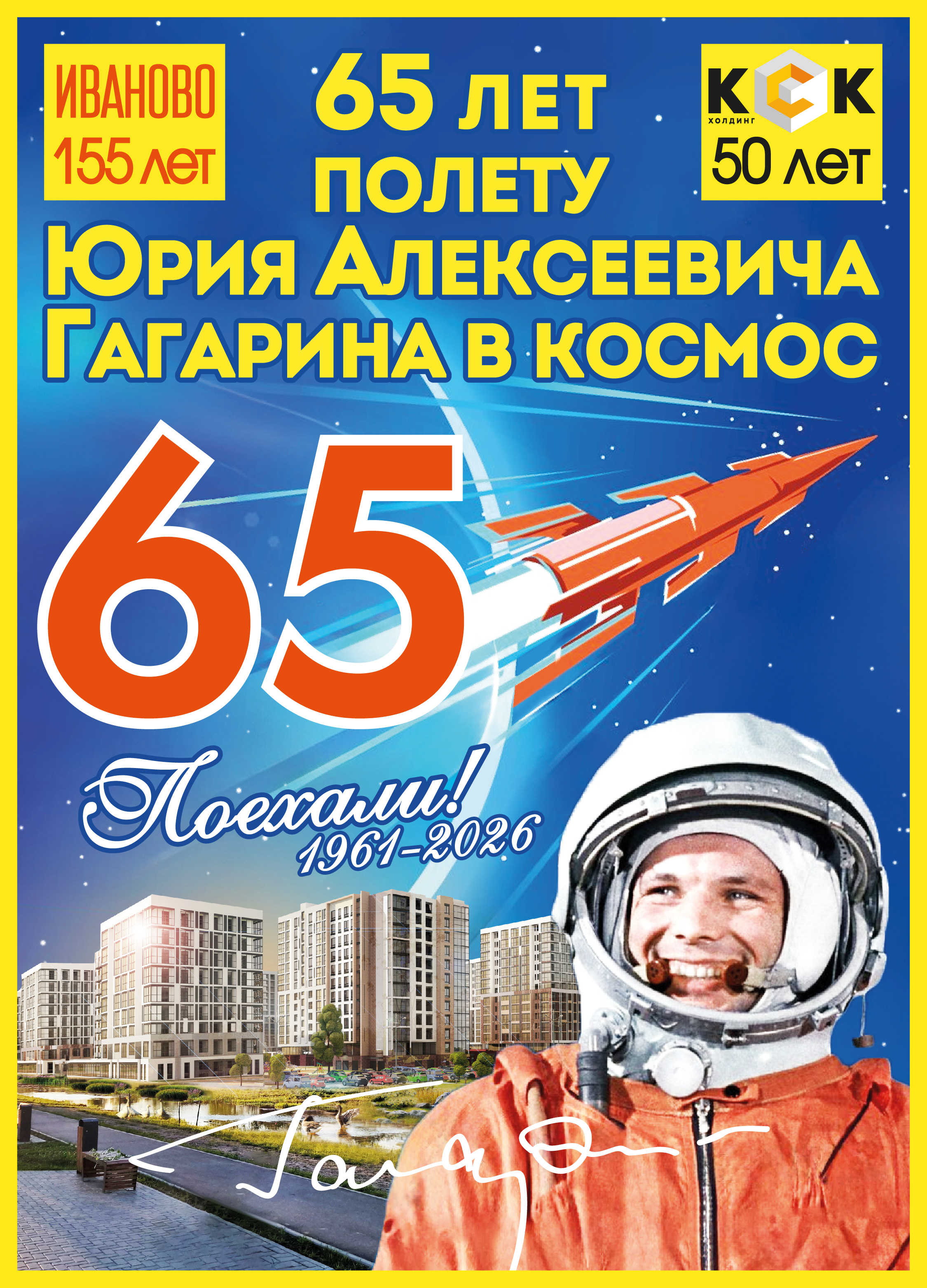 Коллектив ивановского строительно-промышленного Холдинга КСК сердечно поздравляет вас с великим праздником - Днём космонавтики и 65-летием первого полёта человека в космос!