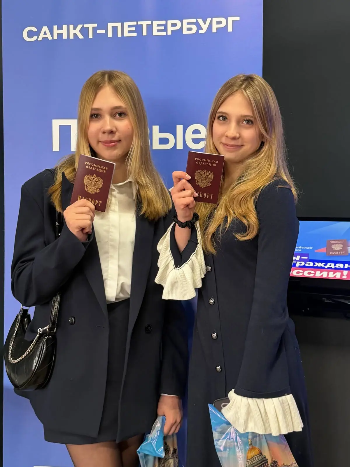 В числе тех, кто получил в этот день паспорт, ученица 7А класса Маргарита Полякова (на фото - справа).