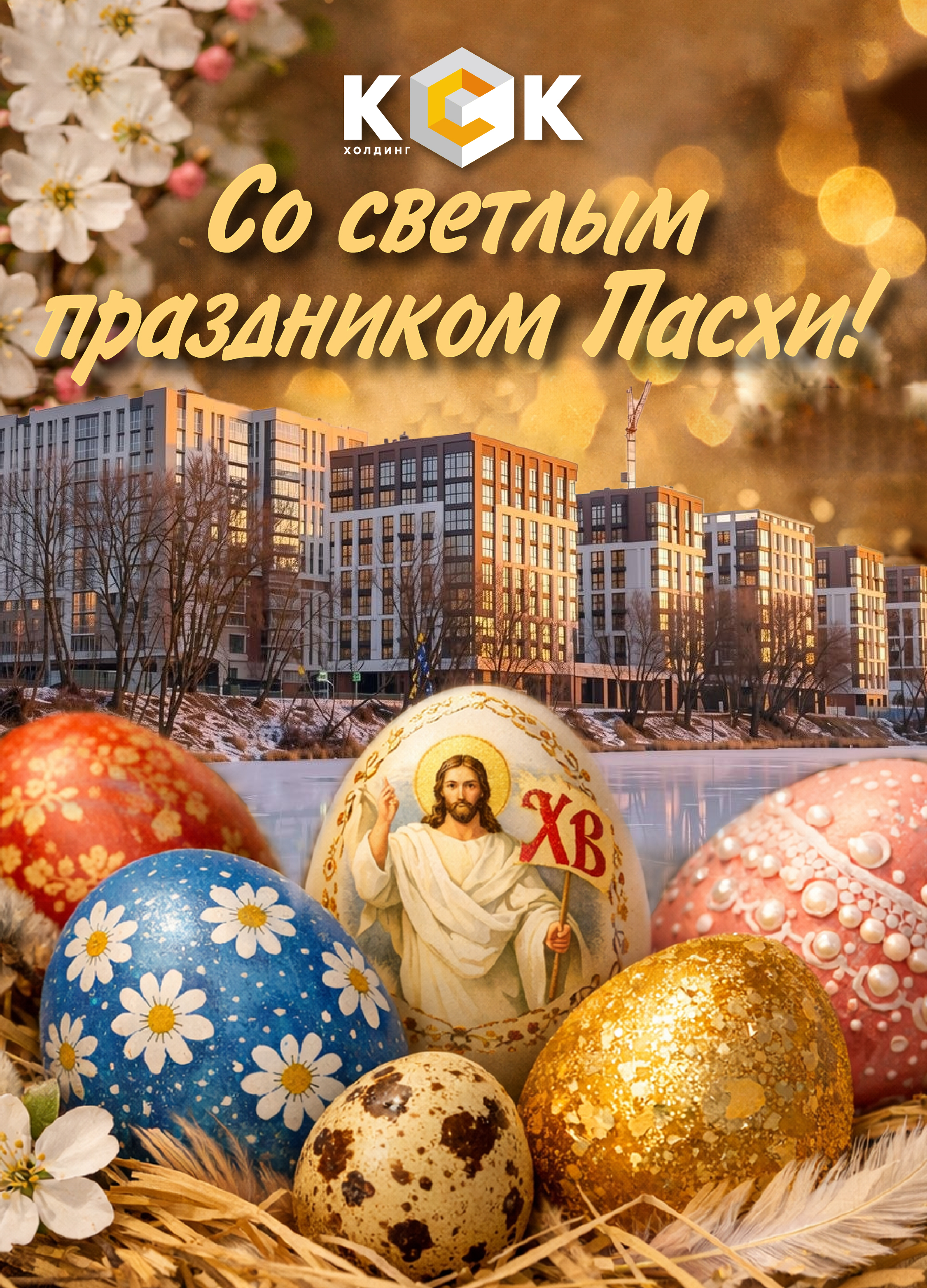 От всего коллектива ивановского строительно-промышленного Холдинга КСК примите самые тёплые и искренние поздравления с великим праздником - Светлым Христовым Воскресением!